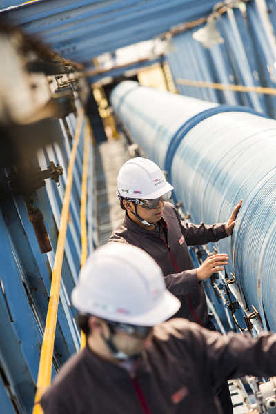 ▲ 금호석유화학 직원들이 사업장 설비를 점검하며 환경안전 위험요소를 관리하고 있다.